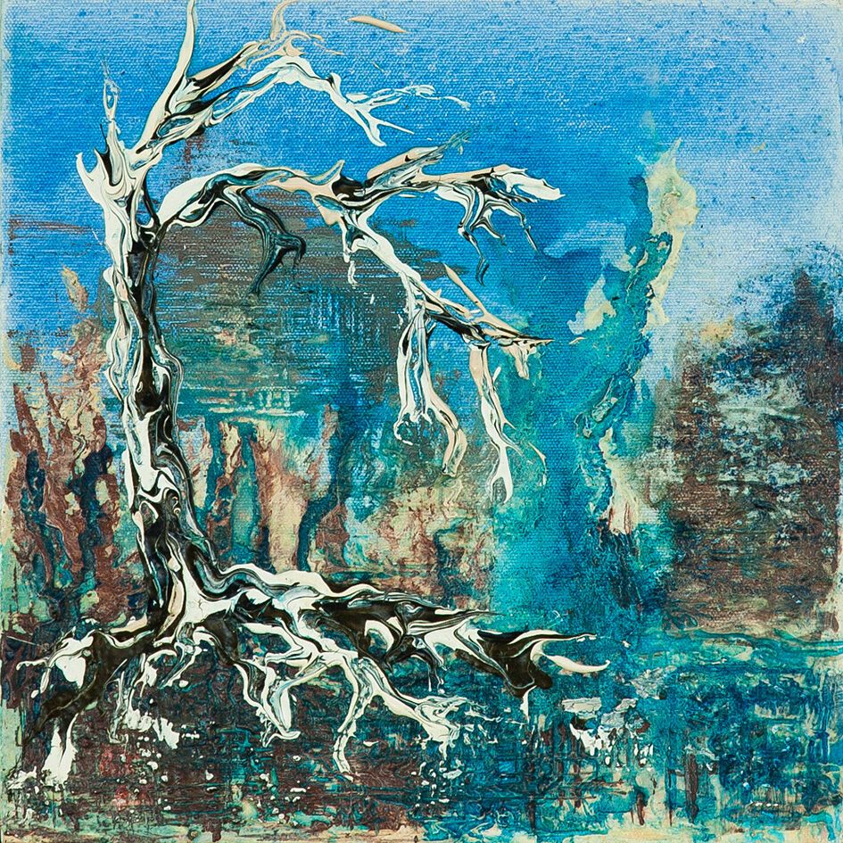 Concept piece (30 cm square canvas) for Ghostly Morning set of 3 mixed media paintings ... Ghostly Morning I (92 x 122 cm) Ghostly Morning II (122 x 61 cm) Ghostly Morning III (122 x 61 cm) all on gallery-wrapped linen